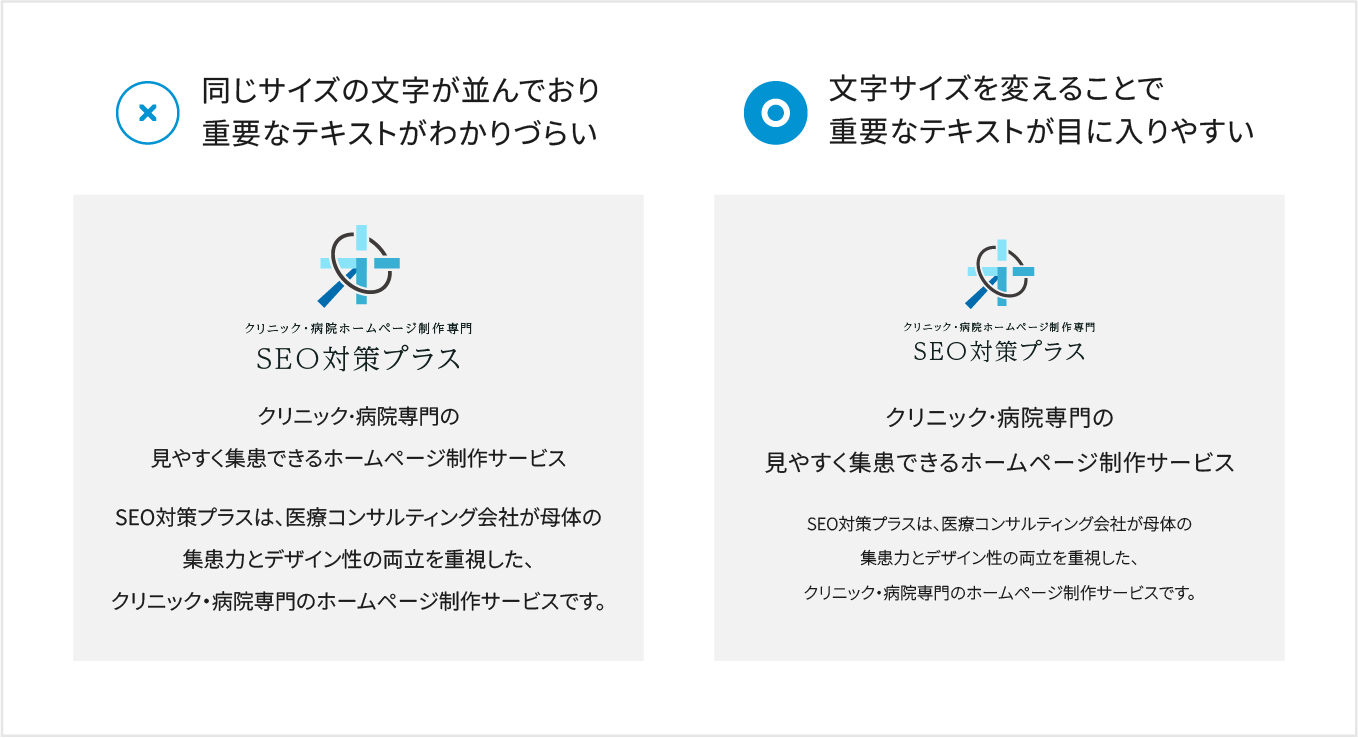 変化をつけることで視線の流れが生まれ、患者さんは自然と重要な情報から順に目を通すことができます。