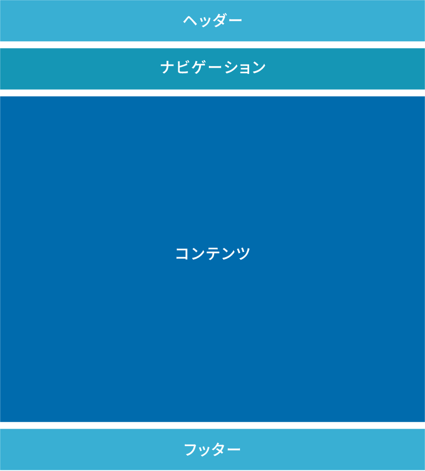 シングルカラムレイアウトとも呼ばれ、コンテンツを縦に配置していくレイアウトです。現在は1カラムレイアウトがトレンドで、多くのホームページで使用されている構成です。